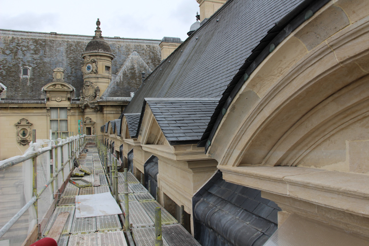 Restauration complète en conservation de la Façade Nord-Ouest du Petit Château en traitant l’ensemble de son architecture comprenant le traitement des micro-organismes invasifs, les décors sculptés, les menuiseries. LEON NOEL est en charge du lot ‘Maçonnerie’.